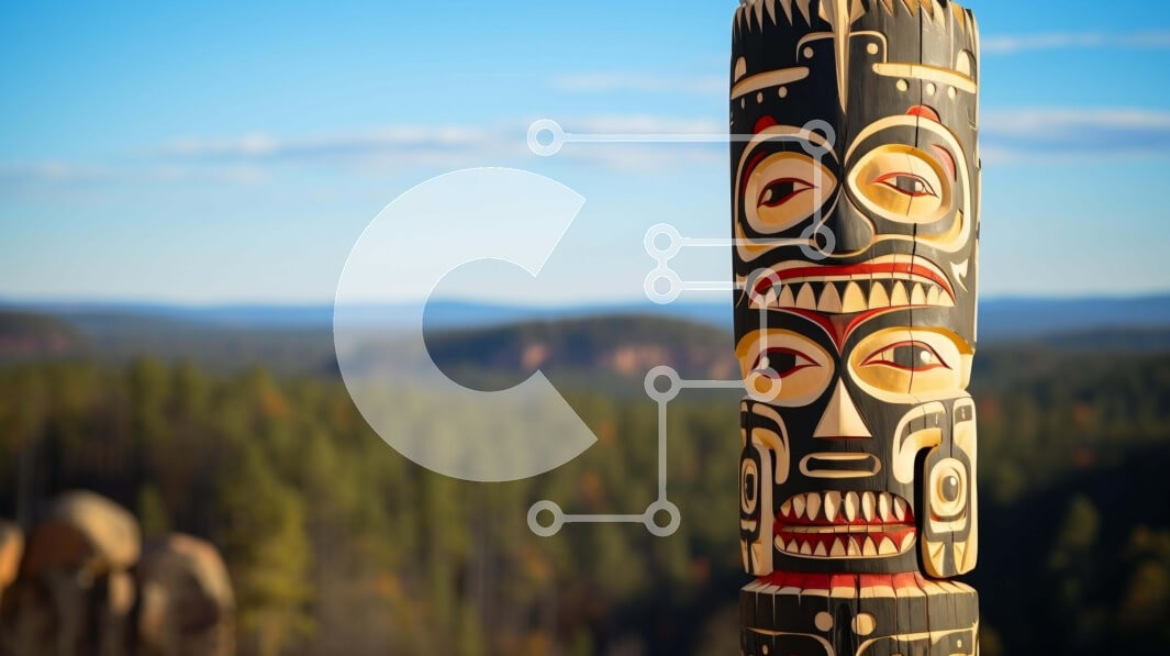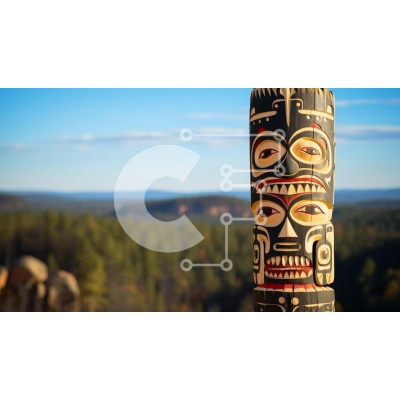 Υπάρχει δυνατότητα προσωποποίησης με δική σας φωτογραφία και προσαρμογής διαστάσεων κατόπιν παραγγελίας. Το συγεκεριμενο puzzle παρουσιαζει Η εικόνα παρουσιάζει έναν ξύλινο στύλο τοτέμ στολισμένο με σκαλίσματα ιθαγενών προσώπων, με φόντο το μαγευτικό σκηνικό βουνών και δασών. Ο πόλος τοτέμ βρίσκεται στο προσκήνιο, με πολλά δέντρα ορατά στο βάθος, υποδηλώνοντας ότι είναι μέρος μιας αυτόχθονης κοινότητας. Ένα μοναδ