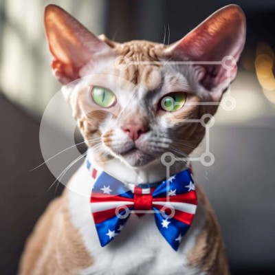 Υπάρχει δυνατότητα προσωποποίησης με δική σας φωτογραφία και προσαρμογής διαστάσεων κατόπιν παραγγελίας. Το συγεκεριμενο Puzzle 10x10 cm – 25 κομμ παρουσιαζει Η εικόνα απεικονίζει μια πορτοκαλί γάτα που φορά ένα παπιγιόν με σχέδιο αμερικανικής σημαίας. Η γάτα έχει πράσινα μάτια και φαίνεται να κοιτάζει επίμονα την κάμερα. Είναι πιθανό η γάτα να ανήκει σε κάποιον που έχει ή φροντίζει γάτες, καθώς φ