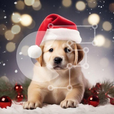 Υπάρχει δυνατότητα προσωποποίησης με δική σας φωτογραφία και προσαρμογής διαστάσεων κατόπιν παραγγελίας. Το συγεκεριμενο Puzzle 10x10 cm – 25 κομμ παρουσιαζει Η εικόνα απεικονίζει ένα αξιολάτρευτο κουτάβι Golden Retriever που φορά ένα κόκκινο καπέλο Άγιου Βασίλη, σε ένα απαλό χιονισμένο φόντο με εορταστικές διακοσμήσεις όπως κόκκινα στολίδια και κλαδιά πεύκου. Το κουτάβι εμφανίζεται περίεργο και π