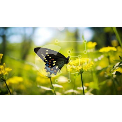 Υπάρχει δυνατότητα προσωποποίησης με δική σας φωτογραφία και προσαρμογής διαστάσεων κατόπιν παραγγελίας. Το συγεκεριμενο puzzle παρουσιαζει Η εικόνα απεικονίζει μια μαύρη πεταλούδα σκαρφαλωμένη σε κίτρινα λουλούδια σε ένα δάσος. Η πεταλούδα φαίνεται να αλληλεπιδρά με τα λουλούδια, πιθανώς να τρέφεται με γύρη ή νέκταρ. Τα ζωηρά χρώματα των λουλουδιών έρχονται σε όμορφη αντίθεση με τα σκούρα φτερά της πεταλούδας, δη