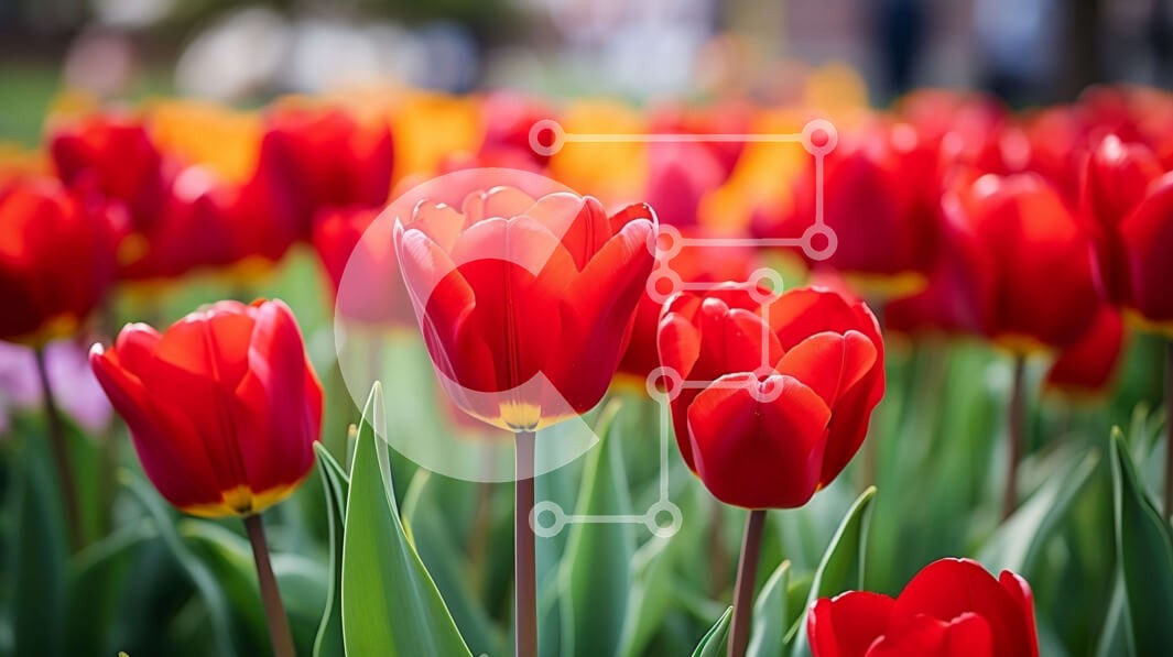 Υπάρχει δυνατότητα προσωποποίησης με δική σας φωτογραφία και προσαρμογής διαστάσεων κατόπιν παραγγελίας. Το συγεκεριμενο puzzle παρουσιαζει Αυτή η εικόνα παρουσιάζει ένα χωράφι με ζωντανές κόκκινες τουλίπες σε πλήρη άνθιση. Τα λουλούδια είναι διατεταγμένα σε συμμετρικό σχέδιο, δημιουργώντας μια οπτικά ευχάριστη σύνθεση. Τα πράσινα φύλλα και οι μίσχοι παρέχουν ένα φόντο με αντίθεση στα κόκκινα πέταλα. Ο ουρανός είν