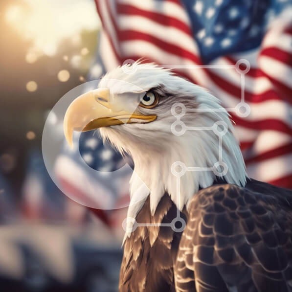 Υπάρχει δυνατότητα προσωποποίησης με δική σας φωτογραφία και προσαρμογής διαστάσεων κατόπιν παραγγελίας. Το συγεκεριμενο Puzzle 10x10 cm – 25 κομμ παρουσιαζει Η εικόνα απαθανατίζει έναν φαλακρό αετό που στέκεται μπροστά από μια αμερικανική σημαία. Το κεφάλι του αετού είναι γερμένο στο πλάι και το ράμφος του είναι ανοιχτό, υπονοώντας ότι είναι σκαρφαλωμένο στην κορυφή της σημαίας. Ο αετός φαίνεται