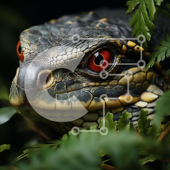 Υπάρχει δυνατότητα προσωποποίησης με δική σας φωτογραφία και προσαρμογής διαστάσεων κατόπιν παραγγελίας. Το συγεκεριμενο Puzzle 10x10 cm – 25 κομμ παρουσιαζει Αυτή η κοντινή φωτογραφία απαθανατίζει το κεφάλι μιας σαύρας που κοιτάζει πίσω από ένα φύλλο. Η σαύρα έχει εντυπωσιακά κίτρινα μάτια και ένα ζωντανό πράσινο και μαύρο σώμα. Οι περίπλοκες λεπτομέρειες των χαρακτηριστικών του είναι ξεκάθαρα ορ