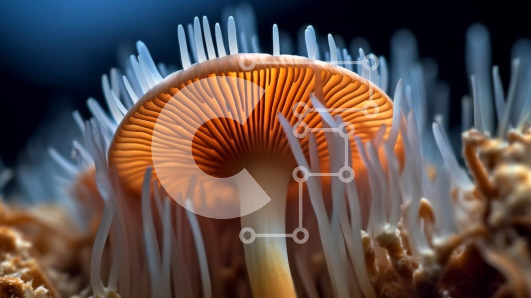 Υπάρχει δυνατότητα προσωποποίησης με δική σας φωτογραφία και προσαρμογής διαστάσεων κατόπιν παραγγελίας. Το συγεκεριμενο puzzle παρουσιαζει Αυτή η εικόνα είναι ένα κοντινό πλάνο ενός μανιταριού με λευκά σπόρια στην κορυφή και πορτοκαλί βράγχια από κάτω. Το μανιτάρι φαίνεται να αναπτύσσεται από μια σκοτεινή, βραχώδη επιφάνεια, γεγονός που ενισχύει τη φυσική ομορφιά του. Ένα μοναδικό puzzle που συνδυάζει ποιότητα,