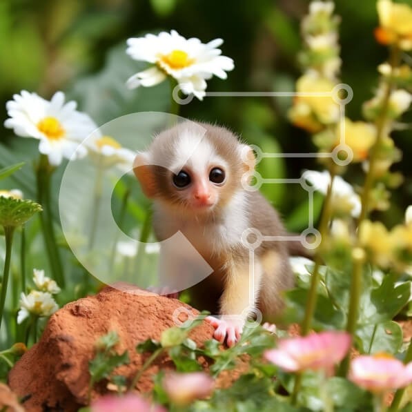 Υπάρχει δυνατότητα προσωποποίησης με δική σας φωτογραφία και προσαρμογής διαστάσεων κατόπιν παραγγελίας. Το συγεκεριμενο Puzzle 10x10 cm – 25 κομμ παρουσιαζει Αυτή η εικόνα απεικονίζει ένα μικρό μωρό λεμούριο να κάθεται σε έναν βράχο σε έναν κήπο που περιβάλλεται από πολύχρωμα λουλούδια. Το αξιολάτρευτο θηλαστικό είναι το επίκεντρο της εικόνας και η παιχνιδιάρικη συμπεριφορά του είναι βέβαιο ότι θ