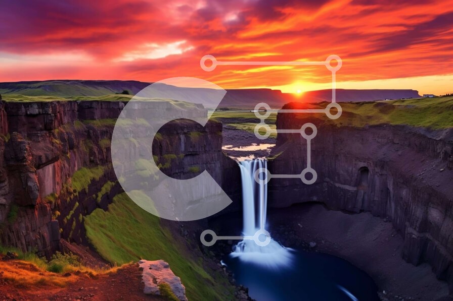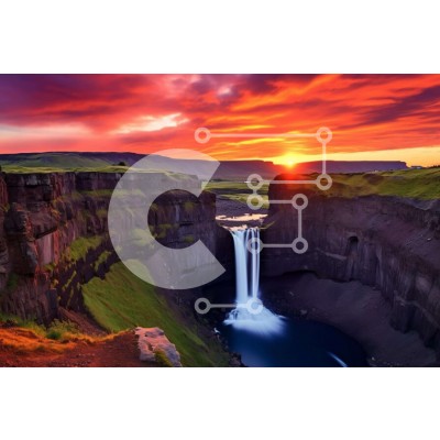 Υπάρχει δυνατότητα προσωποποίησης με δική σας φωτογραφία και προσαρμογής διαστάσεων κατόπιν παραγγελίας. Το συγεκεριμενο puzzle παρουσιαζει Η εικόνα απεικονίζει έναν καταρράκτη στη μέση ενός παγωμένου τοπίου το ηλιοβασίλεμα. Ο καταρράκτης είναι ορατός από πολλές γωνίες, υποδηλώνοντας ότι μπορεί να βρίσκεται κάπου μέσα στο ισλανδικό τοπίο. Θα μπορούσε επίσης να είναι μέρος ενός άλλου υδάτινου όγκου, όπως ένα ποτάμι
