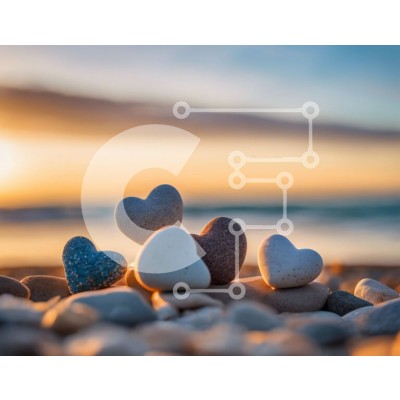 Υπάρχει δυνατότητα προσωποποίησης με δική σας φωτογραφία και προσαρμογής διαστάσεων κατόπιν παραγγελίας. Το συγεκεριμενο puzzle παρουσιαζει Αυτή η εικόνα παρουσιάζει βότσαλα σε σχήμα καρδιάς σε μια παραλία, με τον ήλιο να δύει πίσω τους. Οι βράχοι είναι διατεταγμένοι σε διαφορετικά μεγέθη και σχήματα, υποδηλώνοντας τις δυνατότητές τους για διακοσμητική ή λειτουργική χρήση. Η τακτική τοποθέτηση των βότσαλων προσθέτ
