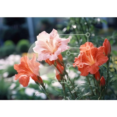Υπάρχει δυνατότητα προσωποποίησης με δική σας φωτογραφία και προσαρμογής διαστάσεων κατόπιν παραγγελίας. Το συγεκεριμενο puzzle παρουσιαζει Η εικόνα παρουσιάζει τρία πορτοκαλί και ροζ λουλούδια που φυτρώνουν σε έναν κήπο κοντά σε μερικά πράσινα φυτά. Τα λουλούδια φαίνεται να ανθίζουν σε διαφορετικές ώρες της ημέρας, κάτι που μπορεί να υποδηλώνει ότι ποτίστηκαν ή γονιμοποιήθηκαν πρόσφατα. Επιπλέον, υπάρχουν πολλά φ