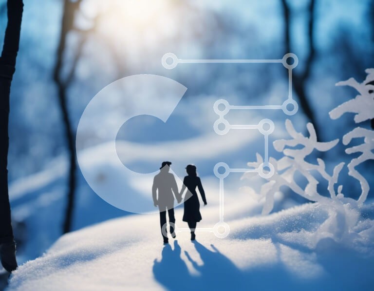 Υπάρχει δυνατότητα προσωποποίησης με δική σας φωτογραφία και προσαρμογής διαστάσεων κατόπιν παραγγελίας. Το συγεκεριμενο puzzle παρουσιαζει Αυτή η εικόνα απεικονίζει ένα ζευγάρι πιασμένο χέρι-χέρι καθώς περπατά μέσα από ένα χιονισμένο δάσος. Οι σιλουέτες των δύο ανθρώπων διακρίνονται στο χιονισμένο φόντο, δημιουργώντας μια ρομαντική και γαλήνια ατμόσφαιρα. Είναι η τέλεια εικόνα για να καταγράψετε την ομορφιά της φ