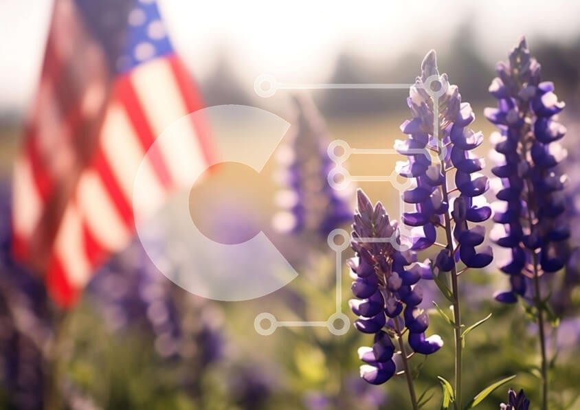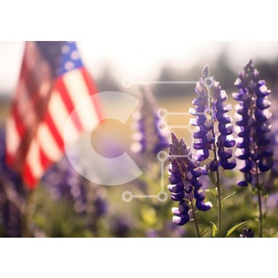 | Όνομα Προϊόντος | Intra Συλλεκτικό Ξύλινο Παζλ Plywood 4mm - Μωβ λουλούδια λούπινου σε χωράφι με αμερικανική σημαία Σε Ξύλινο Κουτί - Διαστάσεις: 10x10 cm – 25 κομμάτια |