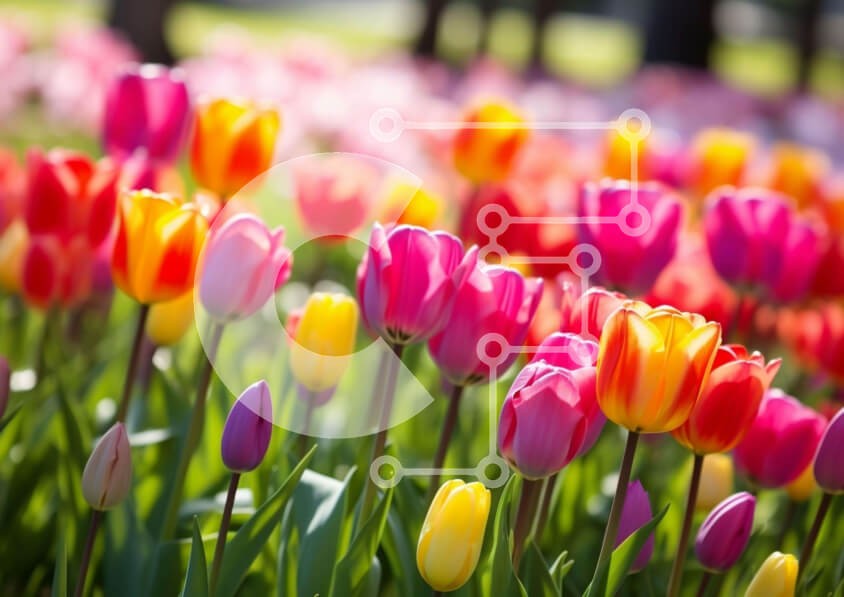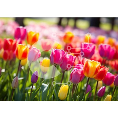 Υπάρχει δυνατότητα προσωποποίησης με δική σας φωτογραφία και προσαρμογής διαστάσεων κατόπιν παραγγελίας. Το συγεκεριμενο puzzle παρουσιαζει Η εικόνα δείχνει ένα ζωντανό πεδίο από πολύχρωμες τουλίπες σε αποχρώσεις του ροζ, πορτοκαλί, κίτρινου και πράσινου. Μερικές τουλίπες στέκονται ψηλότερα, υποδεικνύοντας διαφορετικούς χρόνους φύτευσης. Τα δέντρα είναι διάσπαρτα σε όλο το χωράφι, ενισχύοντας την οπτική έλξη. Ένα