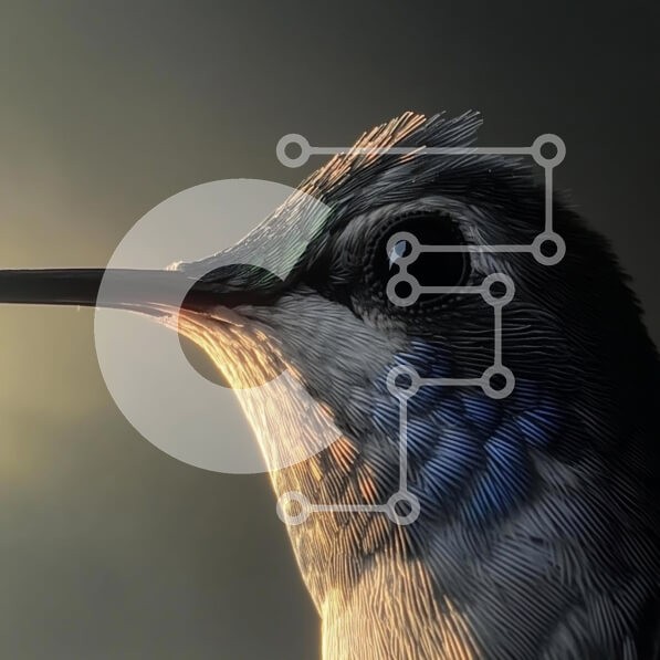 Υπάρχει δυνατότητα προσωποποίησης με δική σας φωτογραφία και προσαρμογής διαστάσεων κατόπιν παραγγελίας. Το συγεκεριμενο Puzzle 10x10 cm – 25 κομμ παρουσιαζει Η εικόνα παρουσιάζει ένα κοντινό πλάνο ενός κολιμπρί σε φόντο απαλά φωτισμένο. Τα ιριδίζοντα φτερά του πουλιού εμφανίζουν μια εκπληκτική σειρά χρωμάτων, συμπεριλαμβανομένων πινελιών πράσινου και μπλε, ενώ το λεπτομερές φτέρωμά του είναι καθα
