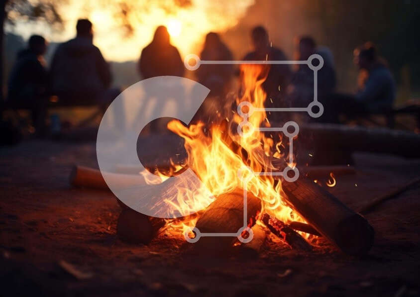Υπάρχει δυνατότητα προσωποποίησης με δική σας φωτογραφία και προσαρμογής διαστάσεων κατόπιν παραγγελίας. Το συγεκεριμενο puzzle παρουσιαζει Η εικόνα παρουσιάζει μια ομάδα ανθρώπων που κάθονται γύρω από μια φωτιά στο δάσος το ηλιοβασίλεμα. Απολαμβάνουν τη ζεστασιά της φωτιάς και συμμετέχουν σε κοινωνικές αλληλεπιδράσεις. Τοποθετούνται κορμοί γύρω από τη φωτιά, υποδηλώνοντας την πιθανή χρήση τους για μαγείρεμα ή παρ