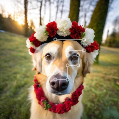 Υπάρχει δυνατότητα προσωποποίησης με δική σας φωτογραφία και προσαρμογής διαστάσεων κατόπιν παραγγελίας. Το συγεκεριμενο Puzzle 10x10 cm – 25 κομμ παρουσιαζει Αυτή η εικόνα παρουσιάζει έναν χρυσό σκύλο που φορά ένα διακοσμητικό στέμμα από λουλούδια σε ένα εξωτερικό περιβάλλον, φαίνεται να απολαμβάνει την εορταστική περίσταση, πιθανώς να παίζει στο γρασίδι ή να κάθεται στο έδαφος. Ο σκύλος είναι πι
