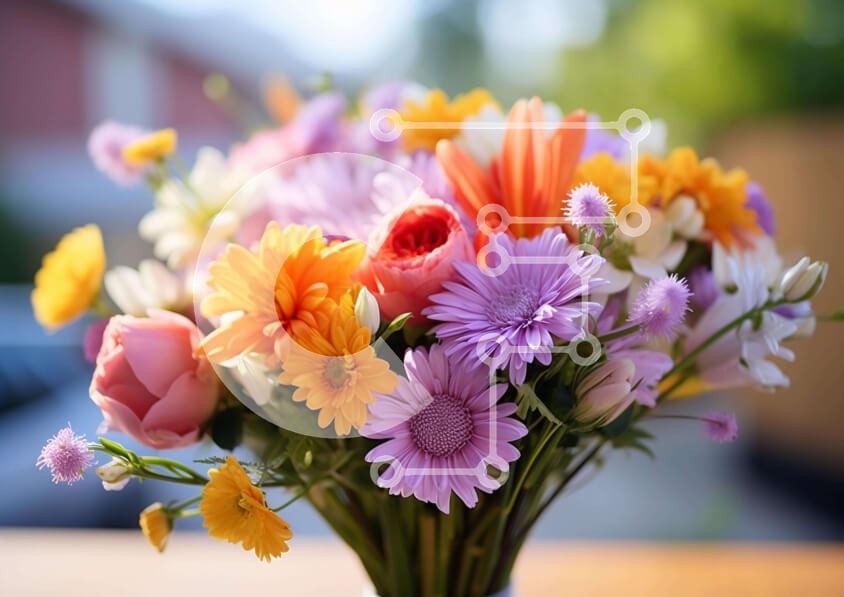 Υπάρχει δυνατότητα προσωποποίησης με δική σας φωτογραφία και προσαρμογής διαστάσεων κατόπιν παραγγελίας. Το συγεκεριμενο puzzle παρουσιαζει Η εικόνα παρουσιάζει ένα βάζο γεμάτο με πολύχρωμα λουλούδια, όπως μαργαρίτες, τριαντάφυλλα και γαρίφαλα. Η διάταξη τοποθετείται πάνω από ένα τραπέζι εξωτερικού χώρου, υποδηλώνοντας ότι τα λουλούδια είναι πιθανό να τα απολαύσετε σε εξωτερικούς χώρους. Υπάρχουν πολλά διαφορετικά