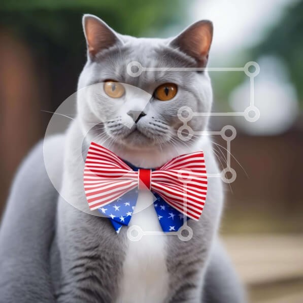 Υπάρχει δυνατότητα προσωποποίησης με δική σας φωτογραφία και προσαρμογής διαστάσεων κατόπιν παραγγελίας. Το συγεκεριμενο Puzzle 10x10 cm – 25 κομμ παρουσιαζει Η εικόνα απεικονίζει μια γκρίζα γάτα που φορά ένα παπιγιόν με θέμα την αμερικανική σημαία. Η γάτα κάθεται στο έδαφος με το κεφάλι της γερμένο στο πλάι και φαίνεται να κοιτάζει κάτι στο πρώτο πλάνο. Μπορεί να είναι περίεργο για το τι συμβαίνε