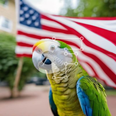 Υπάρχει δυνατότητα προσωποποίησης με δική σας φωτογραφία και προσαρμογής διαστάσεων κατόπιν παραγγελίας. Το συγεκεριμενο Puzzle 10x10 cm – 25 κομμ παρουσιαζει Η εικόνα δείχνει έναν πράσινο και κίτρινο παπαγάλο σκαρφαλωμένο μπροστά από την αμερικανική σημαία. Η περίεργη συμπεριφορά του πουλιού είναι εμφανής καθώς κοιτάζει προς την κάμερα, δημιουργώντας μια μαγευτική σκηνή. Ένα μοναδικό Puzzle 10x1