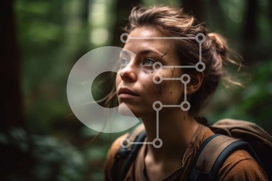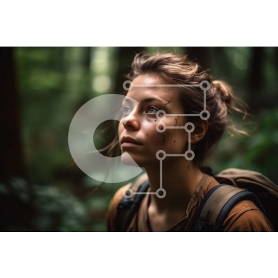 Υπάρχει δυνατότητα προσωποποίησης με δική σας φωτογραφία και προσαρμογής διαστάσεων κατόπιν παραγγελίας. Το συγεκεριμενο puzzle παρουσιαζει Αυτή η εικόνα παρουσιάζει μια νεαρή γυναίκα να στέκεται σε ένα πυκνό δάσος. Φοράει ένα σακίδιο και έχει μπογιά προσώπου. Κοιτάζει μακριά και τα δέντρα και το φύλλωμα δημιουργούν ένα όμορφο φυσικό σκηνικό. Ένα μοναδικό puzzle που συνδυάζει ποιότητα, αισθητική και εμπειρία. Υλ