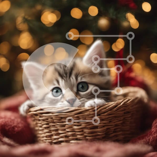 Υπάρχει δυνατότητα προσωποποίησης με δική σας φωτογραφία και προσαρμογής διαστάσεων κατόπιν παραγγελίας. Το συγεκεριμενο Puzzle 10x10 cm – 25 κομμ παρουσιαζει Αυτή η εικόνα δείχνει ένα μικρό γατάκι που κάθεται σε ένα καλάθι, με φόντο ένα όμορφα στολισμένο χριστουγεννιάτικο δέντρο. Τα φωτεινά και ανοιχτά μάτια του γατιού υποδηλώνουν περιέργεια και εγρήγορση. Ακουμπάει πάνω σε μια κουβέρτα, αναζητών