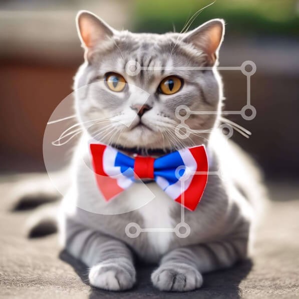 Υπάρχει δυνατότητα προσωποποίησης με δική σας φωτογραφία και προσαρμογής διαστάσεων κατόπιν παραγγελίας. Το συγεκεριμενο Puzzle 10x10 cm – 25 κομμ παρουσιαζει Η εικόνα απεικονίζει μια γκρίζα γάτα που φορά ένα παπιγιόν με θέμα την αμερικανική σημαία. Η γάτα κάθεται στο έδαφος με την πλάτη της στην κάμερα, στραμμένη μακριά από τον θεατή. Φαίνεται να είναι χαλαρό και ικανοποιημένο, απολαμβάνοντας πιθ