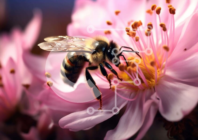 Υπάρχει δυνατότητα προσωποποίησης με δική σας φωτογραφία και προσαρμογής διαστάσεων κατόπιν παραγγελίας. Το συγεκεριμενο puzzle παρουσιαζει Η εικόνα δείχνει μια μέλισσα να αιωρείται πάνω από ένα ροζ λουλούδι, που πιθανώς τρέφεται με νέκταρ ή γύρη. Αυτό το κοντινό πλάνο παρέχει μια εικόνα για τη δομή και τη λειτουργία των μελισσών και τον ρόλο τους στην επικονίαση. Ένα μοναδικό puzzle που συνδυάζει ποιότητα, αισθη