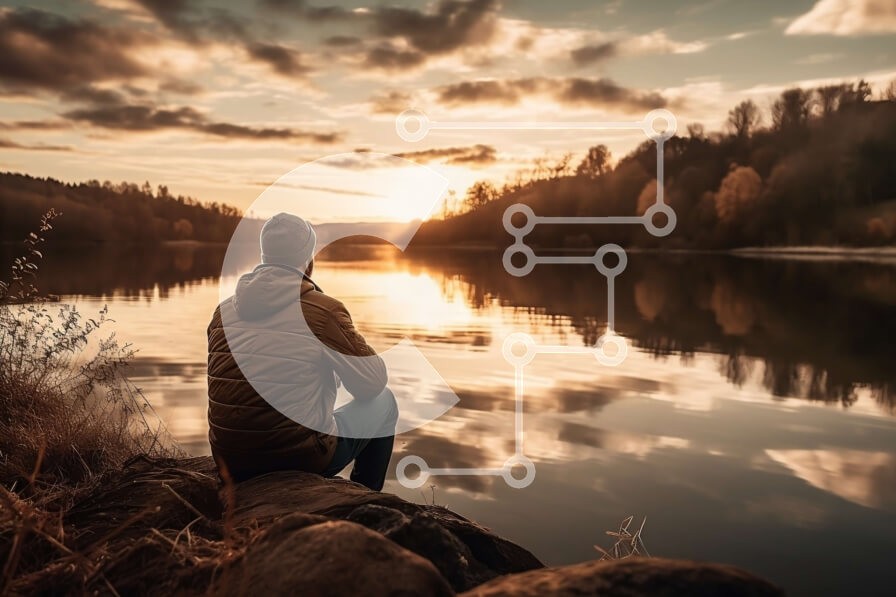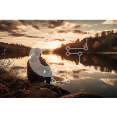 Υπάρχει δυνατότητα προσωποποίησης με δική σας φωτογραφία και προσαρμογής διαστάσεων κατόπιν παραγγελίας. Το συγεκεριμενο puzzle παρουσιαζει Αυτή η εικόνα δείχνει έναν άνδρα με σακάκι με κουκούλα να κάθεται σε έναν βράχο με θέα σε μια λίμνη κατά τη διάρκεια του ηλιοβασιλέματος. Ο πορτοκαλί και ροζ ουρανός από πάνω, καθώς και τα βουνά στο βάθος, προσθέτουν στο εκπληκτικό τοπίο. Ο άνδρας φαίνεται να είναι βαθύς στη σ