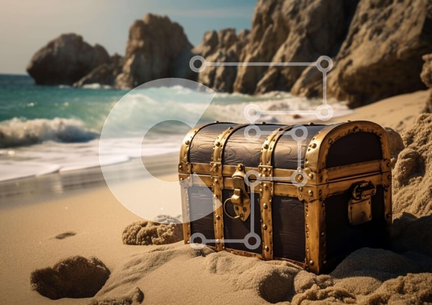 Υπάρχει δυνατότητα προσωποποίησης με δική σας φωτογραφία και προσαρμογής διαστάσεων κατόπιν παραγγελίας. Το συγεκεριμενο puzzle παρουσιαζει Η εικόνα δείχνει ένα ξύλινο σεντούκι θησαυρού τοποθετημένο στην αμμώδη ακτή κοντά στον ωκεανό. Το στήθος είναι καλά συντηρημένο και δεν παρουσιάζει σημάδια φθοράς ή φθοράς, υποδηλώνοντας πιθανώς ότι τοποθετήθηκε σκόπιμα εκεί για διακοσμητικούς λόγους. Ένα μοναδικό puzzle που