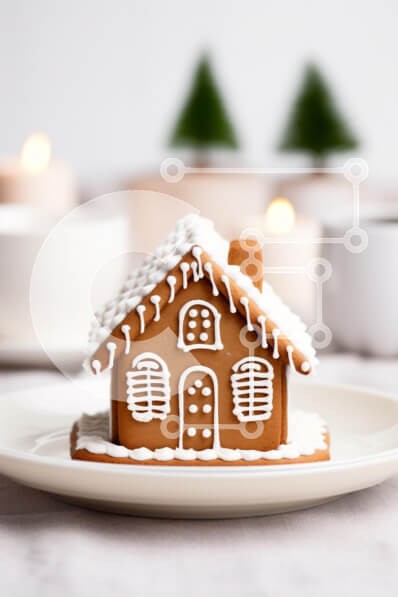 Υπάρχει δυνατότητα προσωποποίησης με δική σας φωτογραφία και προσαρμογής διαστάσεων κατόπιν παραγγελίας. Το συγεκεριμενο Puzzle 10x10 cm – 25 κομμ παρουσιαζει Αυτή η εικόνα παρουσιάζει ένα όμορφα διακοσμημένο σπίτι με μελόψωμο που στηρίζεται σε ένα λευκό πιάτο. Το σπίτι είναι διακοσμημένο με περίπλοκα σχέδια από γλάσο, που μοιάζουν με χιόνι στην οροφή και γύρω από τη βάση. Στο βάθος, υπάρχουν μικρ