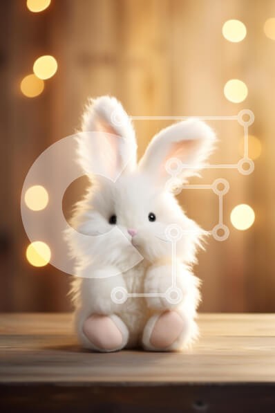 Υπάρχει δυνατότητα προσωποποίησης με δική σας φωτογραφία και προσαρμογής διαστάσεων κατόπιν παραγγελίας. Το συγεκεριμενο Puzzle 10x10 cm – 25 κομμ παρουσιαζει Η εικόνα παρουσιάζει ένα χαριτωμένο βελούδινο παιχνίδι λαγουδάκι, που χαρακτηρίζεται από την χνουδωτή λευκή γούνα και τα μεγάλα αυτιά του. Τοποθετείται σε μια ξύλινη επιφάνεια σε ένα απαλά θολό φόντο γεμάτο ζεστά, λαμπερά φώτα, δημιουργώντας