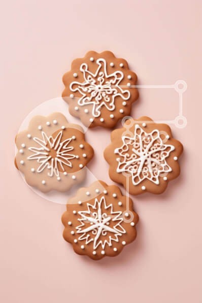 Υπάρχει δυνατότητα προσωποποίησης με δική σας φωτογραφία και προσαρμογής διαστάσεων κατόπιν παραγγελίας. Το συγεκεριμενο Puzzle 10x10 cm – 25 κομμ παρουσιαζει Αυτή η εικόνα παρουσιάζει τέσσερα μπισκότα με μελόψωμο διακοσμημένα με νιφάδες χιονιού και γλάσο, τοποθετημένα σε σχήμα χριστουγεννιάτικου δέντρου. Τα μπισκότα τοποθετούνται σε ροζ φόντο, προσθέτοντας μια εορταστική πινελιά στη σκηνή. Αυτά τ