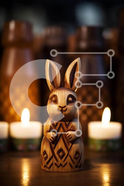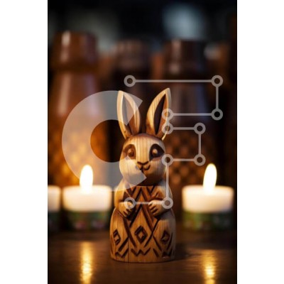 Υπάρχει δυνατότητα προσωποποίησης με δική σας φωτογραφία και προσαρμογής διαστάσεων κατόπιν παραγγελίας. Το συγεκεριμενο Puzzle 10x10 cm – 25 κομμ παρουσιαζει Η εικόνα παρουσιάζει ένα ξύλινο ειδώλιο κουνελιού που κάθεται μπροστά από πολλά κηροπήγια, υποδηλώνοντας ότι μπορεί να είναι πασχαλινή διακόσμηση. Θα μπορούσε επίσης να χρησιμοποιηθεί για να γιορτάσετε τις διακοπές με φίλους και οικογένεια,