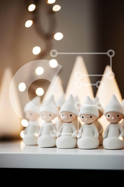Υπάρχει δυνατότητα προσωποποίησης με δική σας φωτογραφία και προσαρμογής διαστάσεων κατόπιν παραγγελίας. Το συγεκεριμενο Puzzle 10x10 cm – 25 κομμ παρουσιαζει Αυτή η εικόνα παρουσιάζει μια ομάδα από λευκά ειδώλια τοποθετημένα σε ένα τραπέζι μπροστά από χριστουγεννιάτικα δέντρα. Το φόντο διαθέτει πολλά φώτα, ενισχύοντας τη γιορτινή ατμόσφαιρα. Είναι μια τέλεια αναπαράσταση της περιόδου των διακοπών