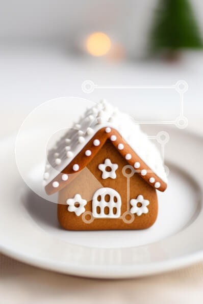 Υπάρχει δυνατότητα προσωποποίησης με δική σας φωτογραφία και προσαρμογής διαστάσεων κατόπιν παραγγελίας. Το συγεκεριμενο Puzzle 10x10 cm – 25 κομμ παρουσιαζει Η εικόνα παρουσιάζει ένα γοητευτικό σπίτι από μελόψωμο διακοσμημένο με λευκό γλάσο και πολύχρωμες καραμέλες. Τοποθετείται σε λευκό πιάτο, με απαλό, θολό φόντο που υποδηλώνει μια ζεστή, εορταστική ατμόσφαιρα. Το σπίτι έχει μια χιονισμένη στέγ