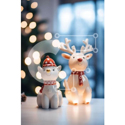Υπάρχει δυνατότητα προσωποποίησης με δική σας φωτογραφία και προσαρμογής διαστάσεων κατόπιν παραγγελίας. Το συγεκεριμενο Puzzle 10x10 cm – 25 κομμ παρουσιαζει Αυτή η εικόνα παρουσιάζει δύο κεραμικά ειδώλια ταράνδων που κάθονται σε ένα τραπέζι μπροστά από ένα φωτισμένο χριστουγεννιάτικο δέντρο. Είναι ντυμένες με ερυθρόλευκα outfits, αποπνέοντας μια γιορτινή ατμόσφαιρα. Το τραπέζι στολίζεται με πολλ