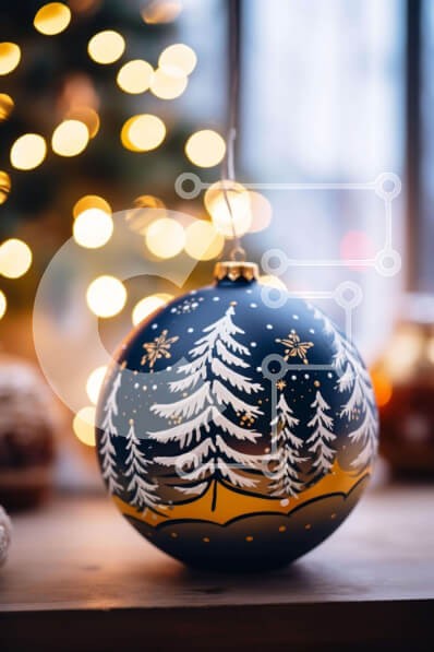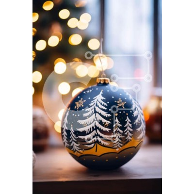 Υπάρχει δυνατότητα προσωποποίησης με δική σας φωτογραφία και προσαρμογής διαστάσεων κατόπιν παραγγελίας. Το συγεκεριμενο Puzzle 10x10 cm – 25 κομμ παρουσιαζει Αυτή η εικόνα παρουσιάζει ένα στολίδι μαύρης μπάλας διακοσμημένο με πεύκα σε σχήμα νιφάδων χιονιού. Στέκεται σε λεπτά ξύλινα πόδια, καθιστώντας το ιδανικό για επίδειξη κατά την περίοδο των γιορτών. Η γύρω σκηνή περιλαμβάνει κεριά και άλλα αν
