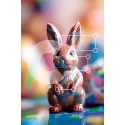 Υπάρχει δυνατότητα προσωποποίησης με δική σας φωτογραφία και προσαρμογής διαστάσεων κατόπιν παραγγελίας. Το συγεκεριμενο Puzzle 10x10 cm – 25 κομμ παρουσιαζει Αυτή η εικόνα παρουσιάζει ένα μικρό καφέ κεραμικό ειδώλιο κουνελιού που κάθεται σε ένα πολύχρωμο τραπέζι. Στο βάθος διακρίνονται αρκετά πολύχρωμα πασχαλινά αυγά, δημιουργώντας μια γιορτινή ατμόσφαιρα. Τα έντονα χρώματα του τραπεζιού και των