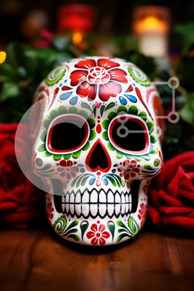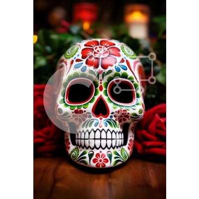 Υπάρχει δυνατότητα προσωποποίησης με δική σας φωτογραφία και προσαρμογής διαστάσεων κατόπιν παραγγελίας. Το συγεκεριμενο Puzzle 10x10 cm – 25 κομμ παρουσιαζει Η εικόνα παρουσιάζει ένα όμορφα διακοσμημένο κρανίο, που θυμίζει τις παραδοσιακές γιορτές της Ημέρας των Νεκρών. Το κρανίο είναι διακοσμημένο με ζωηρά χρώματα και περίπλοκα μοτίβα λουλουδιών, επιδεικνύοντας ένα εντυπωσιακό σχέδιο που αιχμαλω