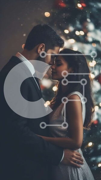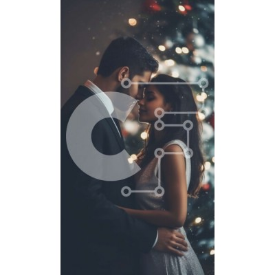 Υπάρχει δυνατότητα προσωποποίησης με δική σας φωτογραφία και προσαρμογής διαστάσεων κατόπιν παραγγελίας. Το συγεκεριμενο Puzzle 10x10 cm – 25 κομμ παρουσιαζει Αυτή η εικόνα δείχνει ένα ζευγάρι ντυμένο με επίσημη ενδυμασία αγκαλιασμένο μπροστά από ένα χριστουγεννιάτικο δέντρο. Το δέντρο είναι στολισμένο με φωτάκια και στολίδια, δημιουργώντας μια ζεστή και ζεστή ατμόσφαιρα. Η ενδυμασία του ζευγαριού