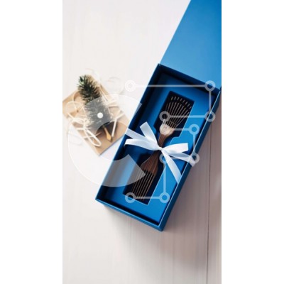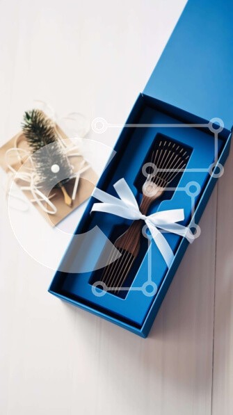Υπάρχει δυνατότητα προσωποποίησης με δική σας φωτογραφία και προσαρμογής διαστάσεων κατόπιν παραγγελίας. Το συγεκεριμενο Puzzle 10x10 cm – 25 κομμ παρουσιαζει Αυτή η εικόνα παρουσιάζει ένα μπλε κουτί δώρου με ένα διακοσμητικό πεύκο και δύο χτένες. Μια λευκή κορδέλα είναι δεμένη γύρω από το επάνω μέρος του κουτιού, προσθέτοντας μια κομψή πινελιά στη διάταξη. Στο βάθος διακρίνονται στο τραπέζι μικρά