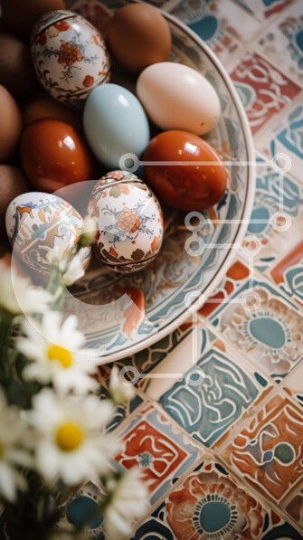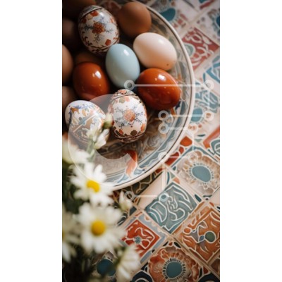 Υπάρχει δυνατότητα προσωποποίησης με δική σας φωτογραφία και προσαρμογής διαστάσεων κατόπιν παραγγελίας. Το συγεκεριμενο Puzzle 10x10 cm – 25 κομμ παρουσιαζει Η εικόνα δείχνει ένα πιάτο γεμάτο με πολλά πολύχρωμα αυγά, καθώς και μαργαρίτες και άλλα λουλούδια, δημιουργώντας ένα ζωντανό και εορταστικό σκηνικό. Αυτά τα είδη αποτελούν μέρος μιας πασχαλινής γιορτής, καθώς το τραπέζι είναι στολισμένο με