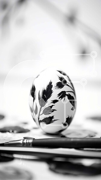 Υπάρχει δυνατότητα προσωποποίησης με δική σας φωτογραφία και προσαρμογής διαστάσεων κατόπιν παραγγελίας. Το συγεκεριμενο Puzzle 10x10 cm – 25 κομμ παρουσιαζει Αυτή η εικόνα παρουσιάζει μια ασπρόμαυρη φωτογραφία ενός πασχαλινού αυγού στολισμένου με λουλουδάτα μοτίβα. Πολλά πινέλα τοποθετούνται στο τραπέζι δίπλα στο αυγό, υποδηλώνοντας τη χρήση του για ζωγραφική ή σχέδιο. Επιπλέον, μερικά πινέλα είν