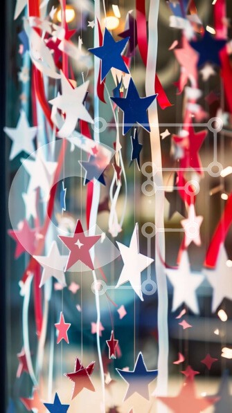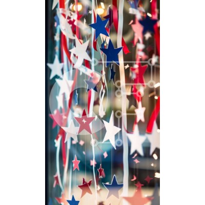 Υπάρχει δυνατότητα προσωποποίησης με δική σας φωτογραφία και προσαρμογής διαστάσεων κατόπιν παραγγελίας. Το συγεκεριμενο Puzzle 10x10 cm – 25 κομμ παρουσιαζει Η εικόνα δείχνει μια οθόνη από κόκκινα, λευκά και μπλε χάρτινα αστέρια που κρέμονται από την οροφή, μαζί με άλλα διακοσμητικά σχήματα. Η σκηνή υποδηλώνει μια εορταστική εκδήλωση ή γιορτή, πιθανότατα για τις διακοπές της 4ης Ιουλίου. Ένα μον