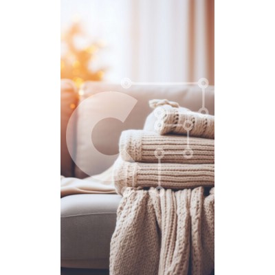 Υπάρχει δυνατότητα προσωποποίησης με δική σας φωτογραφία και προσαρμογής διαστάσεων κατόπιν παραγγελίας. Το συγεκεριμενο Puzzle 10x10 cm – 25 κομμ παρουσιαζει Αυτή η εικόνα παρουσιάζει μια στοίβα από κουβέρτες σε έναν άνετο καναπέ. Στο βάθος, υπάρχει ένα παράθυρο με θέα σε ένα όμορφα στολισμένο χριστουγεννιάτικο δέντρο. Η σκηνή αποπνέει ζεστασιά και θαλπωρή, ιδανική για έργα και σχέδια με θέμα τις