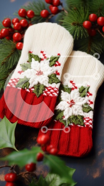 Υπάρχει δυνατότητα προσωποποίησης με δική σας φωτογραφία και προσαρμογής διαστάσεων κατόπιν παραγγελίας. Το συγεκεριμενο Puzzle 10x10 cm – 25 κομμ παρουσιαζει Αυτή η εικόνα παρουσιάζει ένα ζευγάρι εορταστικά γάντια με φόντο αειθαλή κλαδιά και έντονα κόκκινα μούρα. Τα γάντια είναι κυρίως κόκκινα και κρεμ, στολισμένα με περίπλοκα κεντήματα που περιλαμβάνει ένα λευκό λουλούδι αλεξανδρινός και πράσινα