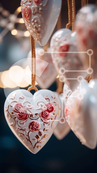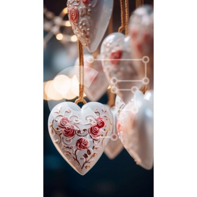 Υπάρχει δυνατότητα προσωποποίησης με δική σας φωτογραφία και προσαρμογής διαστάσεων κατόπιν παραγγελίας. Το συγεκεριμενο Puzzle 10x10 cm – 25 κομμ παρουσιαζει Η εικόνα παρουσιάζει μια ομάδα στολιδιών σε σχήμα καρδιάς, στολισμένα με τριαντάφυλλα και άλλα σχέδια λουλουδιών. Αυτά τα διακοσμητικά είναι τέλεια για την Ημέρα του Αγίου Βαλεντίνου ή οποιαδήποτε άλλη ειδική περίσταση. Είναι αναρτημένα από