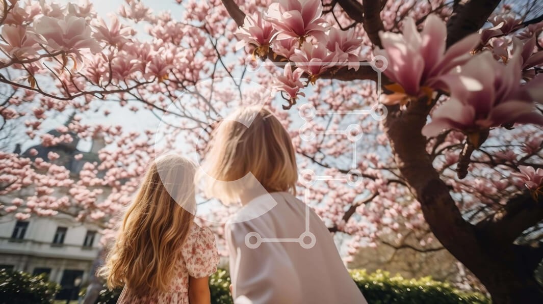 Υπάρχει δυνατότητα προσωποποίησης με δική σας φωτογραφία και προσαρμογής διαστάσεων κατόπιν παραγγελίας. Το συγεκεριμενο puzzle παρουσιαζει Η εικόνα παρουσιάζει δύο νεαρά κορίτσια που περπατούν κάτω από μια ανθισμένη μανόλια, η οποία είναι γεμάτη με ροζ λουλούδια. Απολαμβάνουν την ομορφιά των ανθέων καθώς κοιτάζουν ο ένας τον άλλον και αλληλεπιδρούν μεταξύ τους. Αυτή η σκηνή θα μπορούσε να τραβηχτεί σε μια αστική