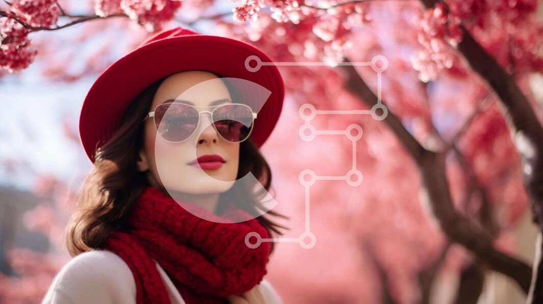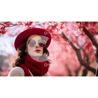 Υπάρχει δυνατότητα προσωποποίησης με δική σας φωτογραφία και προσαρμογής διαστάσεων κατόπιν παραγγελίας. Το συγεκεριμενο puzzle παρουσιαζει Αυτή η εικόνα παρουσιάζει μια γυναίκα με κόκκινο καπέλο, γυαλιά ηλίου και κασκόλ να στέκεται μπροστά από ροζ ανθισμένα δέντρα. Αιχμαλωτίζει την ουσία της άνοιξης ή του καλοκαιριού με ζωηρά χρώματα και την ομορφιά της φύσης σε πλήρη άνθιση. Ένα μοναδικό puzzle που συνδυάζει πο