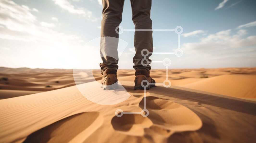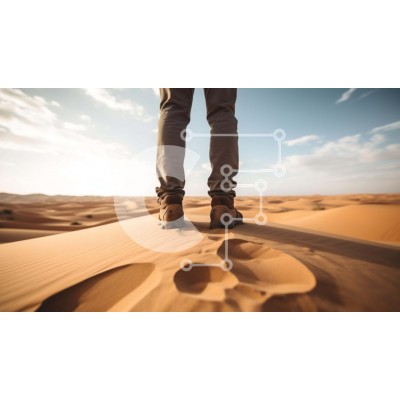 Υπάρχει δυνατότητα προσωποποίησης με δική σας φωτογραφία και προσαρμογής διαστάσεων κατόπιν παραγγελίας. Το συγεκεριμενο puzzle παρουσιαζει Αυτή η εικόνα δείχνει ένα άτομο να στέκεται στην έρημο, με τα πόδια του να ακουμπούν στους αμμόλοφους. Τα παπούτσια του ατόμου είναι ορατά στο κάτω μέρος της εικόνας, υποδηλώνοντας ότι φοράει μπότες πεζοπορίας ή σανδάλια. Μπορεί να εξερευνούν την περιοχή και να αναζητούν ενδια