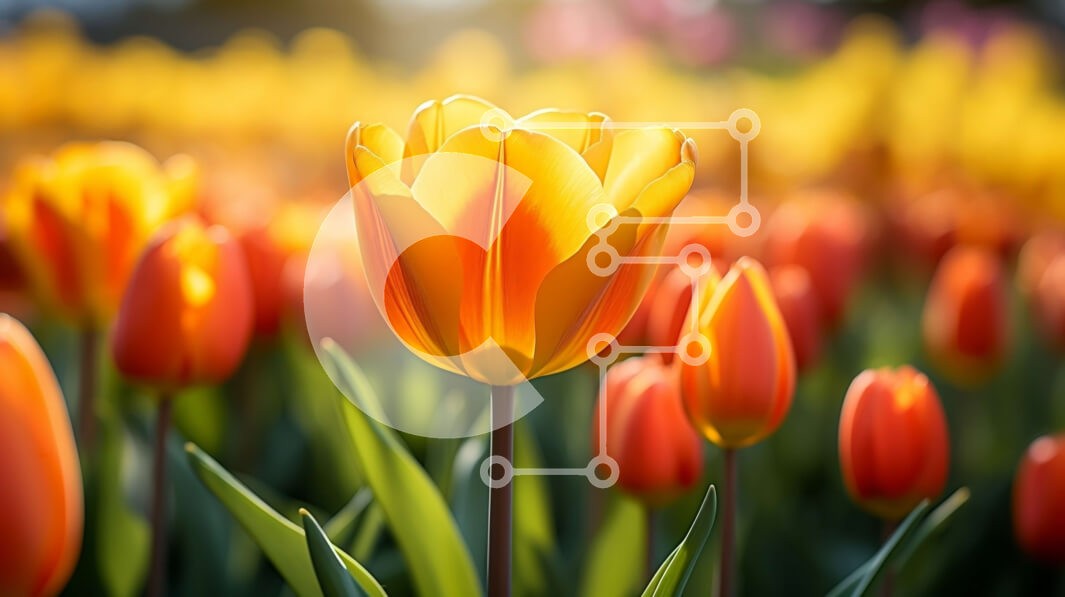 Υπάρχει δυνατότητα προσωποποίησης με δική σας φωτογραφία και προσαρμογής διαστάσεων κατόπιν παραγγελίας. Το συγεκεριμενο puzzle παρουσιαζει Αυτή η εικόνα δείχνει ένα πεδίο με λαμπερές πορτοκαλί τουλίπες σε πλήρη άνθιση, με τον ήλιο να λάμπει πάνω τους. Οι τουλίπες έχουν μεγάλα, ζωντανά πέταλα και μακριά, λεπτά στελέχη. Είναι διατεταγμένα σε σειρές, άλλα γέρνουν προς την κάμερα και άλλα στέκονται όρθια. Το φόντο εί