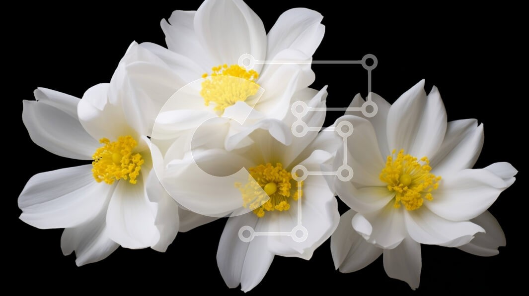 Υπάρχει δυνατότητα προσωποποίησης με δική σας φωτογραφία και προσαρμογής διαστάσεων κατόπιν παραγγελίας. Το συγεκεριμενο puzzle παρουσιαζει Αυτή η εικόνα παρουσιάζει ένα σύμπλεγμα τριών λευκών λουλουδιών με κίτρινα κέντρα. Τα λουλούδια είναι τοποθετημένα μαζί στη μέση ενός μαύρου φόντου, δημιουργώντας μια εντυπωσιακή αντίθεση. Κάθε λουλούδι έχει το δικό του μοναδικό σχήμα και μέγεθος, προσθέτοντας στο συνολικό οπτ
